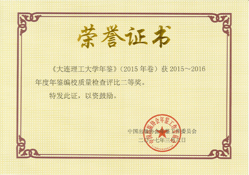 近日,由中国出版协会年鉴工作委员会组织的2015~2016年度全国年鉴编校质量检查评比结果揭晓,《大连理工大学年鉴》(2015年卷)荣获二等奖。